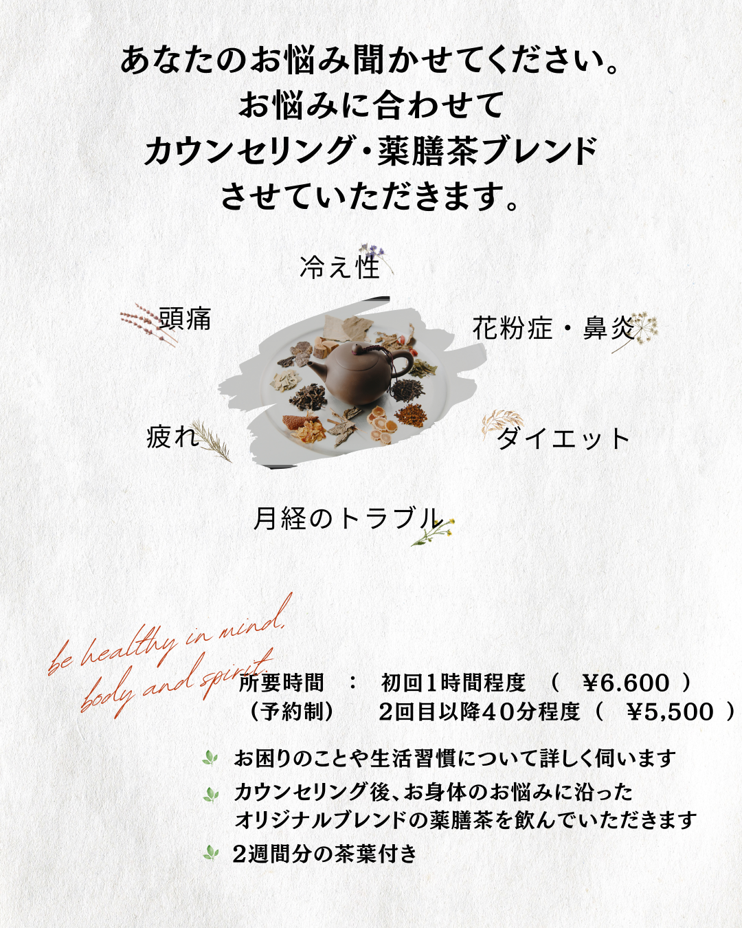 漢方薬剤師·栄養士も在籍していますので、色んなご相談をしていただけます。
